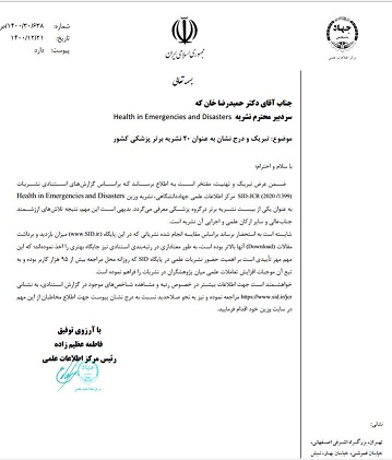 Health in Emergencies and Disasters به عنوان یکی از ۲۰ نشریه برتر گروه پزشکی معرفی گردیده است.